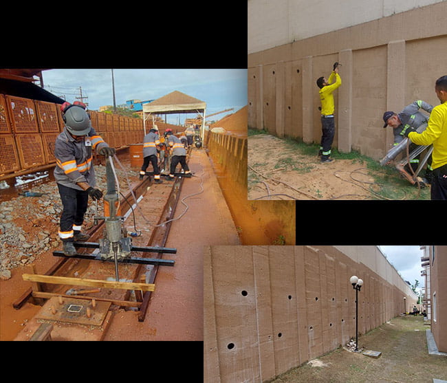 Perfuração em lajes, vigas, pilares e estruturas de concreto em geral.